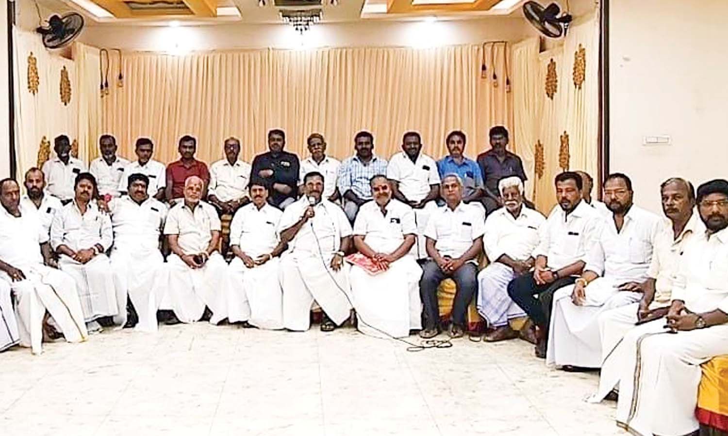 Members of the Tiruchy Gandhi Market traders’ federation at the discussion on Thursday