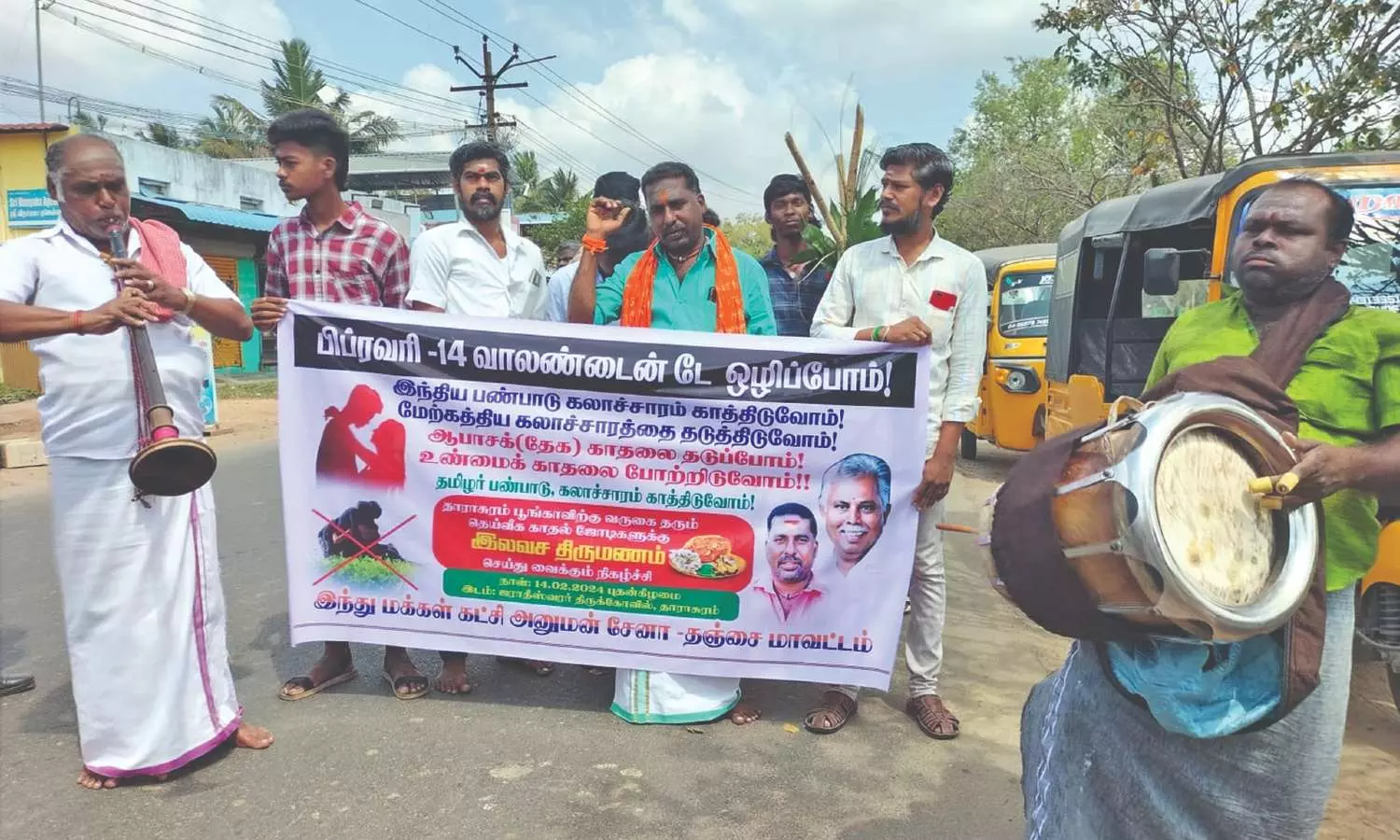 Meanwhile, in Thanjavur a section of Hindu outfit members gathered in front of the Big Temple, parks, and various places and staged protests against the Valentine’s Day celebrations.