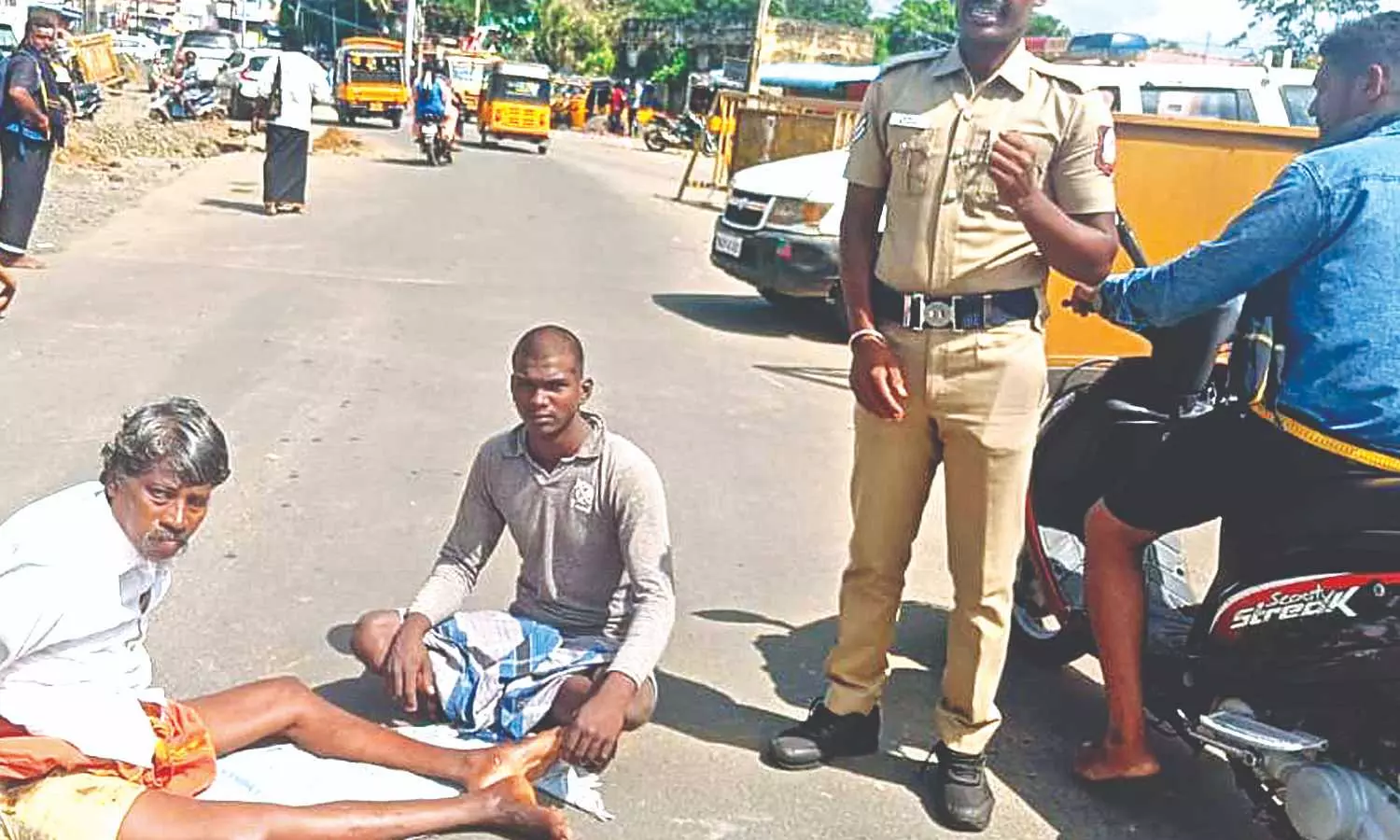 MAHABALIPURAM: Tension prevailed in Mahabalipuram as relatives of a sculptor staged a protest against the cops for refusing to let him go to hospital after he suffered a serious spine injury in a road accident.