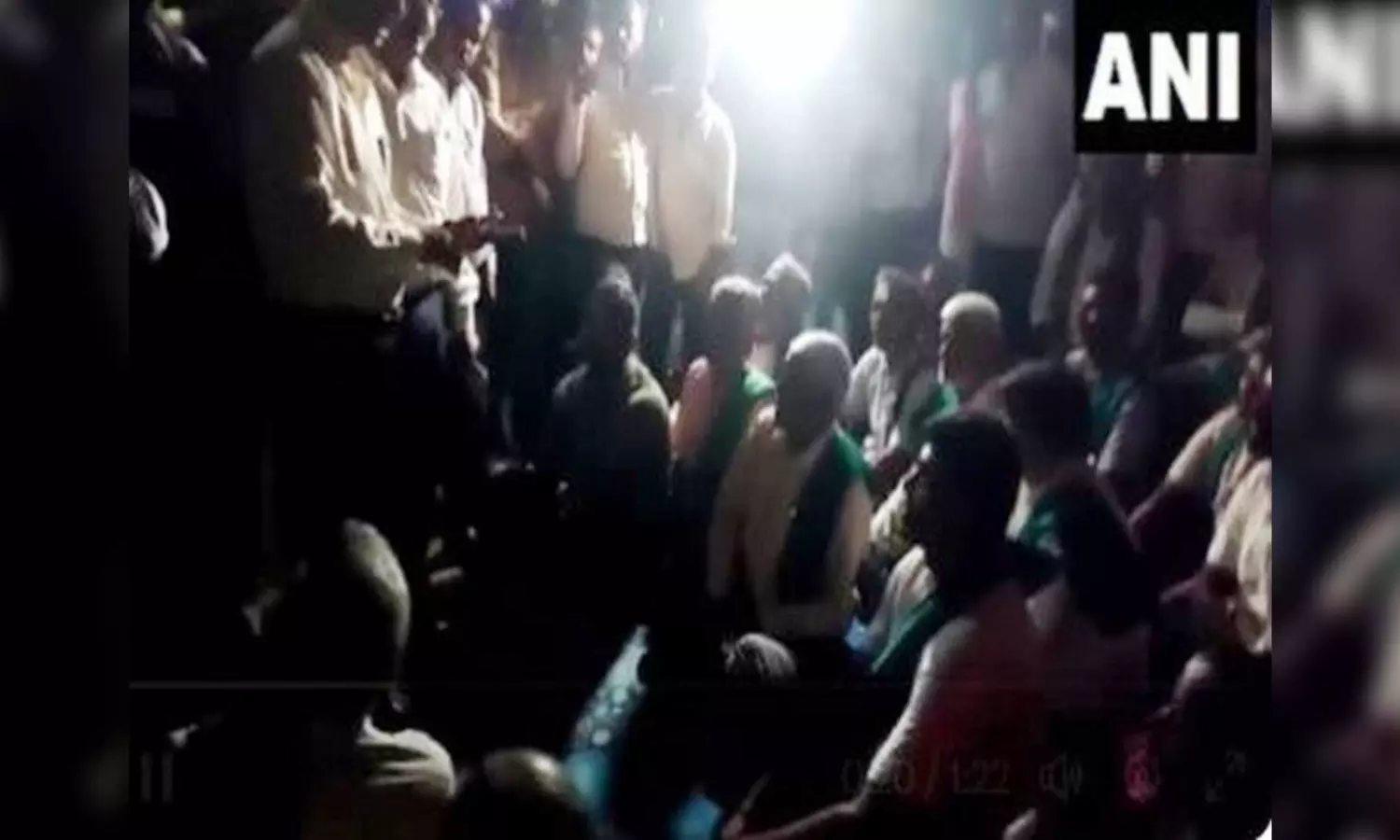 Farmers in Mandya staging a late-night protest on Wednesday against CWRC's recommendation (Photo/ANI)