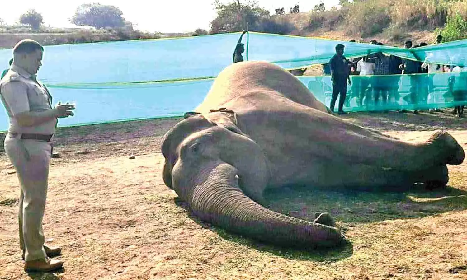 As the news of its death spread out, a large number of villagers from nearby residential areas descended at the spot to have a glimpse of the elephant.