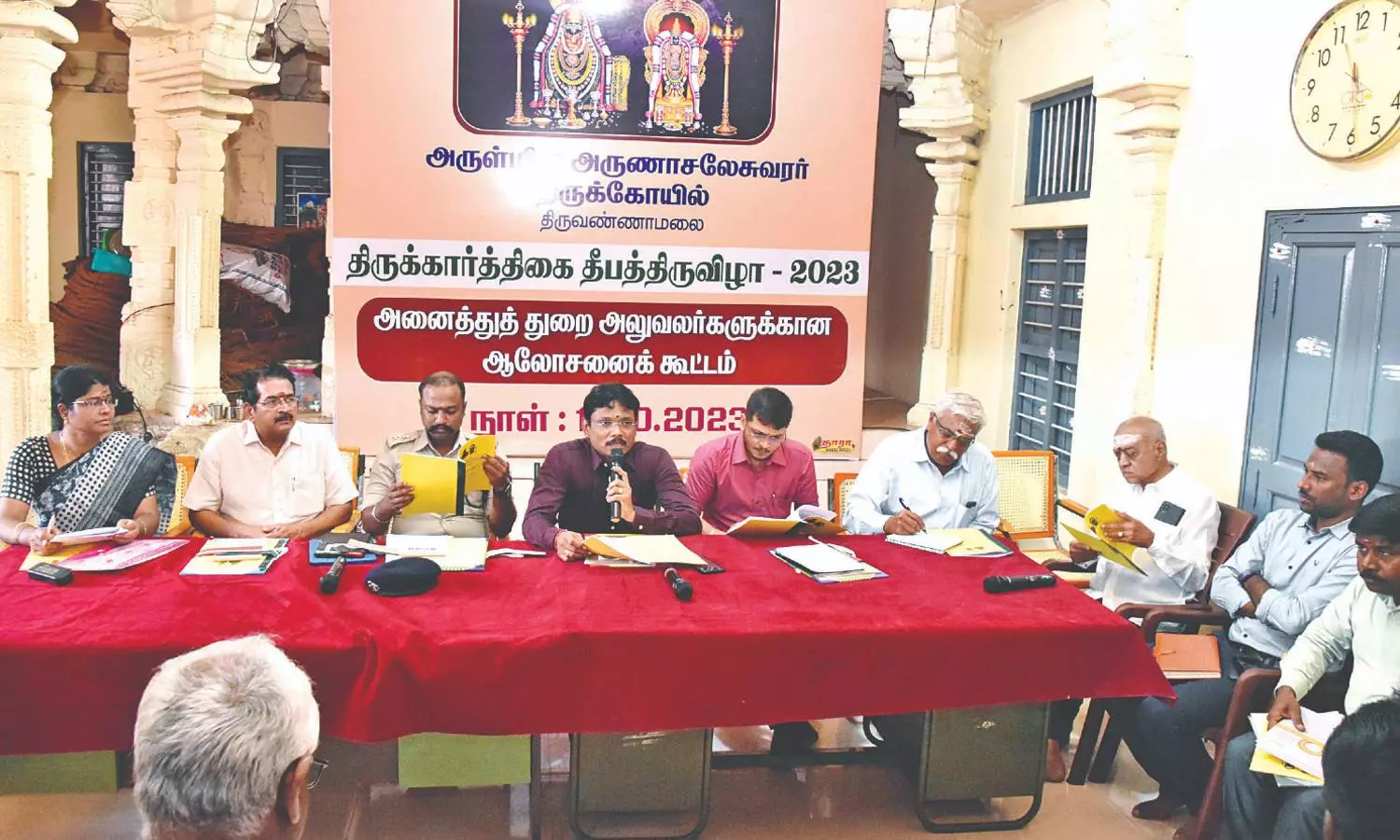 TIRUVANNAMALAI: Collector B Murugesh along with SP Karthikeyan addressed an advisory committee comprising officials from all departments on the works for the ensuing Karthigai Deepam setting the mood for the festival on Wednesday.