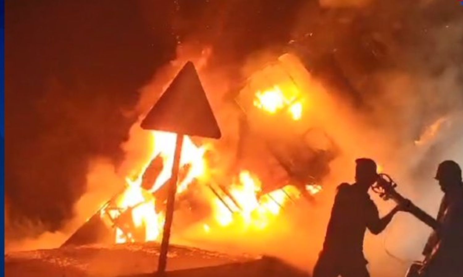 According to a Thanthi TV report, the fire broke out after the driver lost control, causing the vehicle to plunge into a ditch and crash into an electric pole.