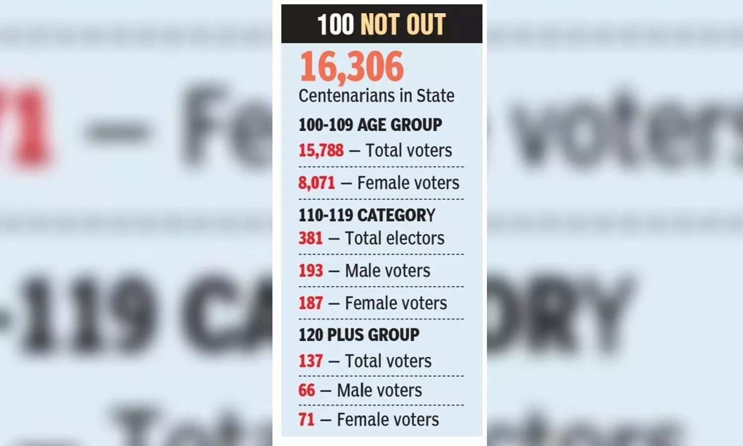 The integrated draft electoral roll of the Special Summary Revision of Photo Electoral Rolls 2024, published here on Friday, reveals an interesting fact that as many as 16,306 voters, including two trans persons, in the State, are aged above 100.