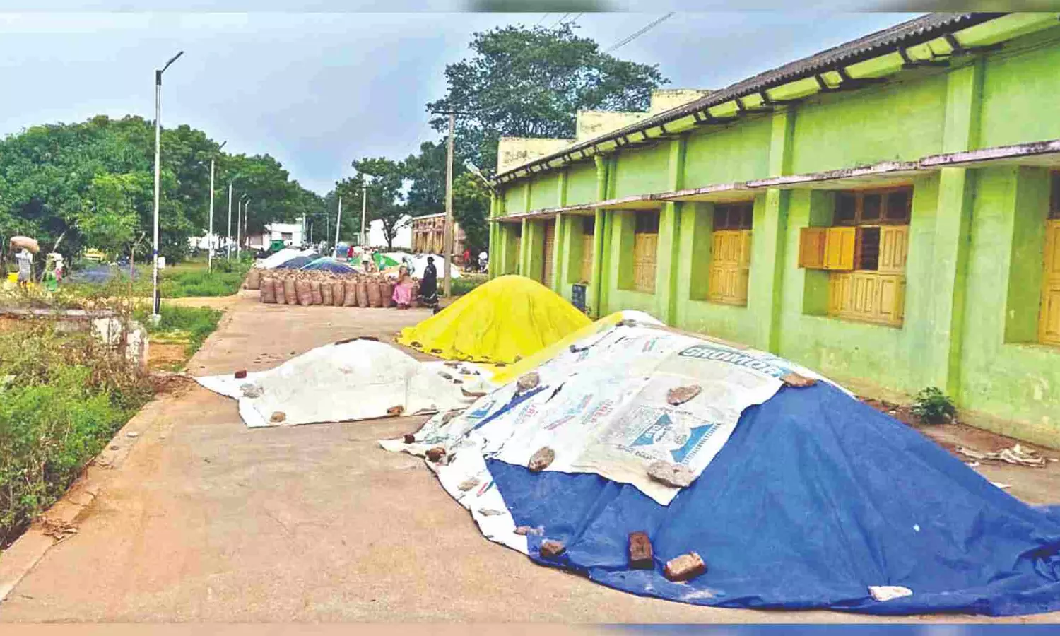 While the harvested stocks of paddy have been transported to the DPCs in the respective regions, officials stopped procuring paddy for the past few days without any intimation. So the farmers have been taking all steps to protect the paddy from gettting drenched.