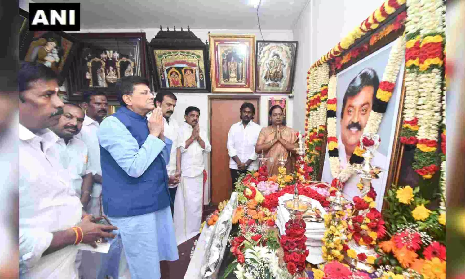 Union Minister Piyush Goyal paid tribute to the late DMDK chief and actor Vijayakanth at his residence in Chennai (Photo/ANI)