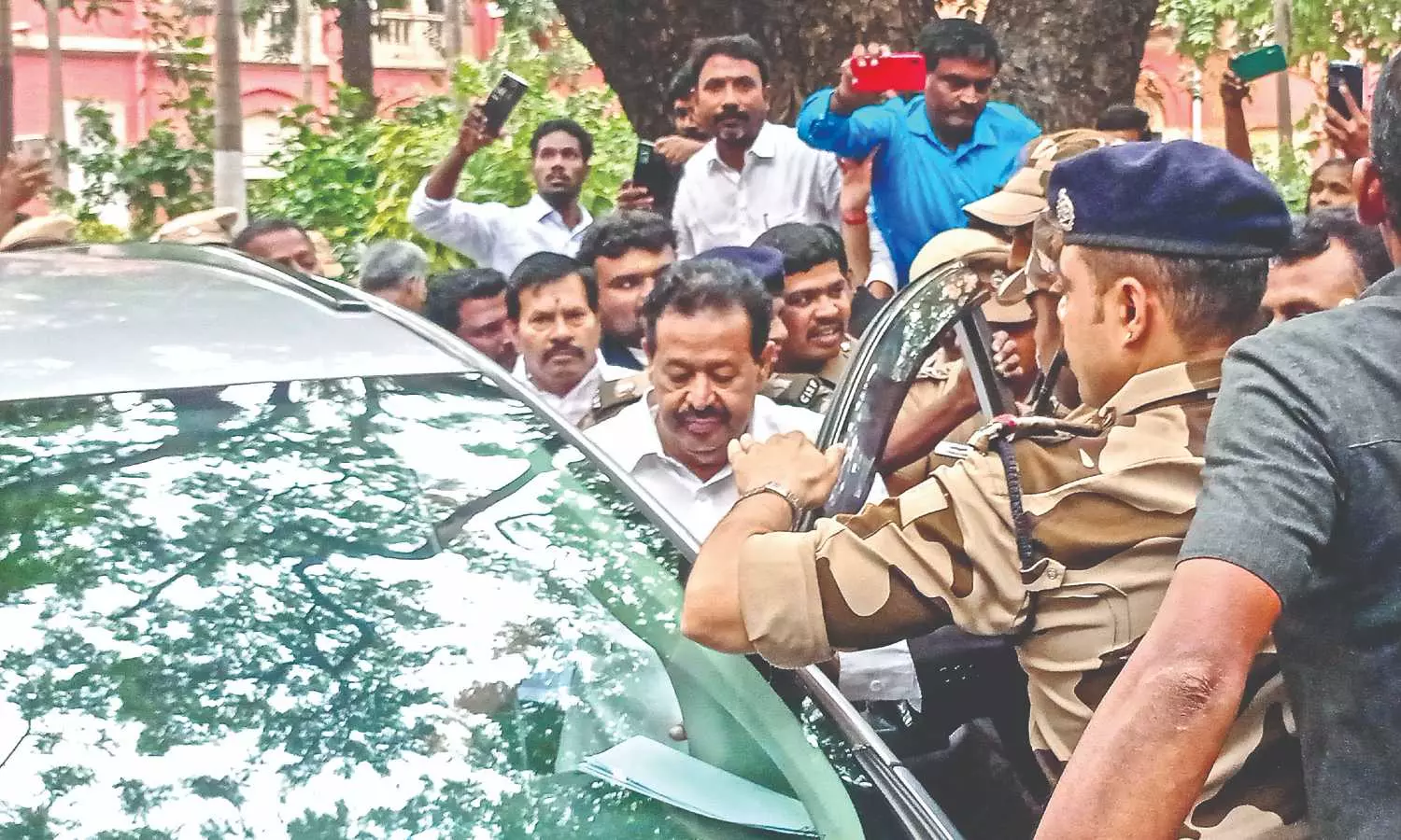Ponmudy after the Madras High Court pronounced the quantum of punishment in the disproportionate assets case. (Photo credit: Hemanathan M)