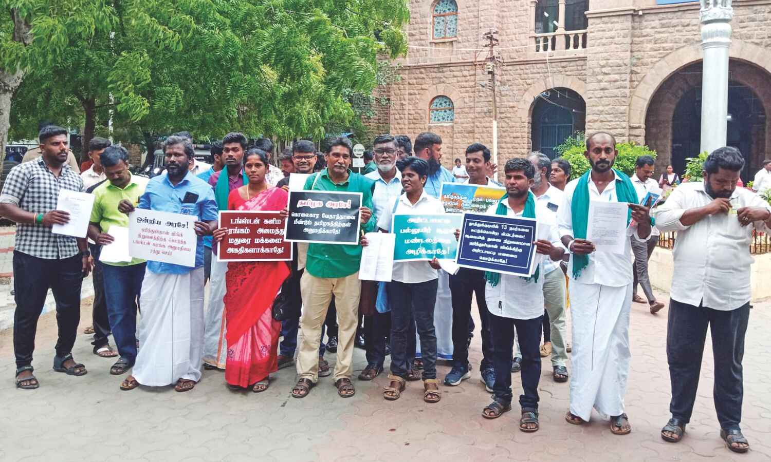 Activist Mugilan and others protesting on the premises of the Collectorate in Madurai on Monday