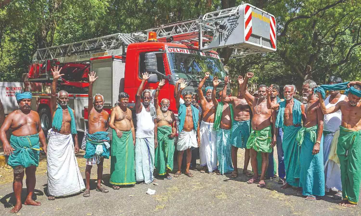 Scores of Tamil Nadu farmers gathered at Jantar Mantar, some of who climbed nearby trees and a mobile tower, police said. Police used a fire brigade crane to bring the farmers back to the ground from the mobile tower, they said.