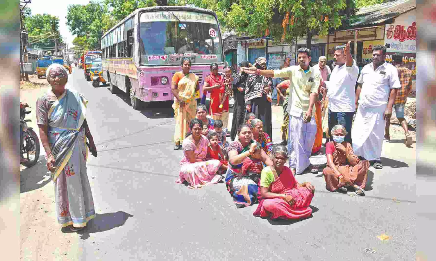 Residents protest delay in road works in Thanjai