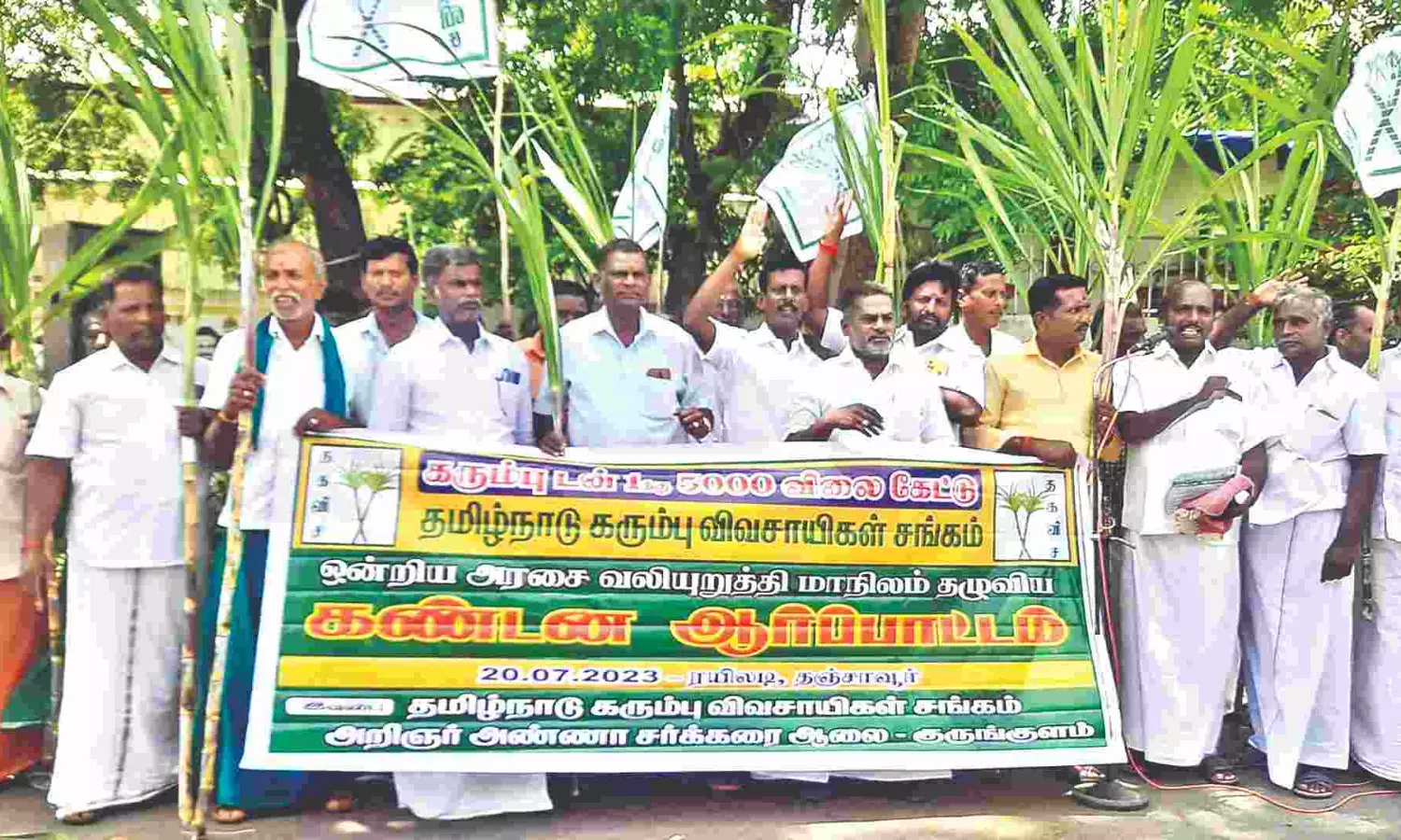 TIRUCHY: The sugarcane farmers from Thanjavur staged a protest on Thursday demanding a MSP of Rs 5,000 per tonne.