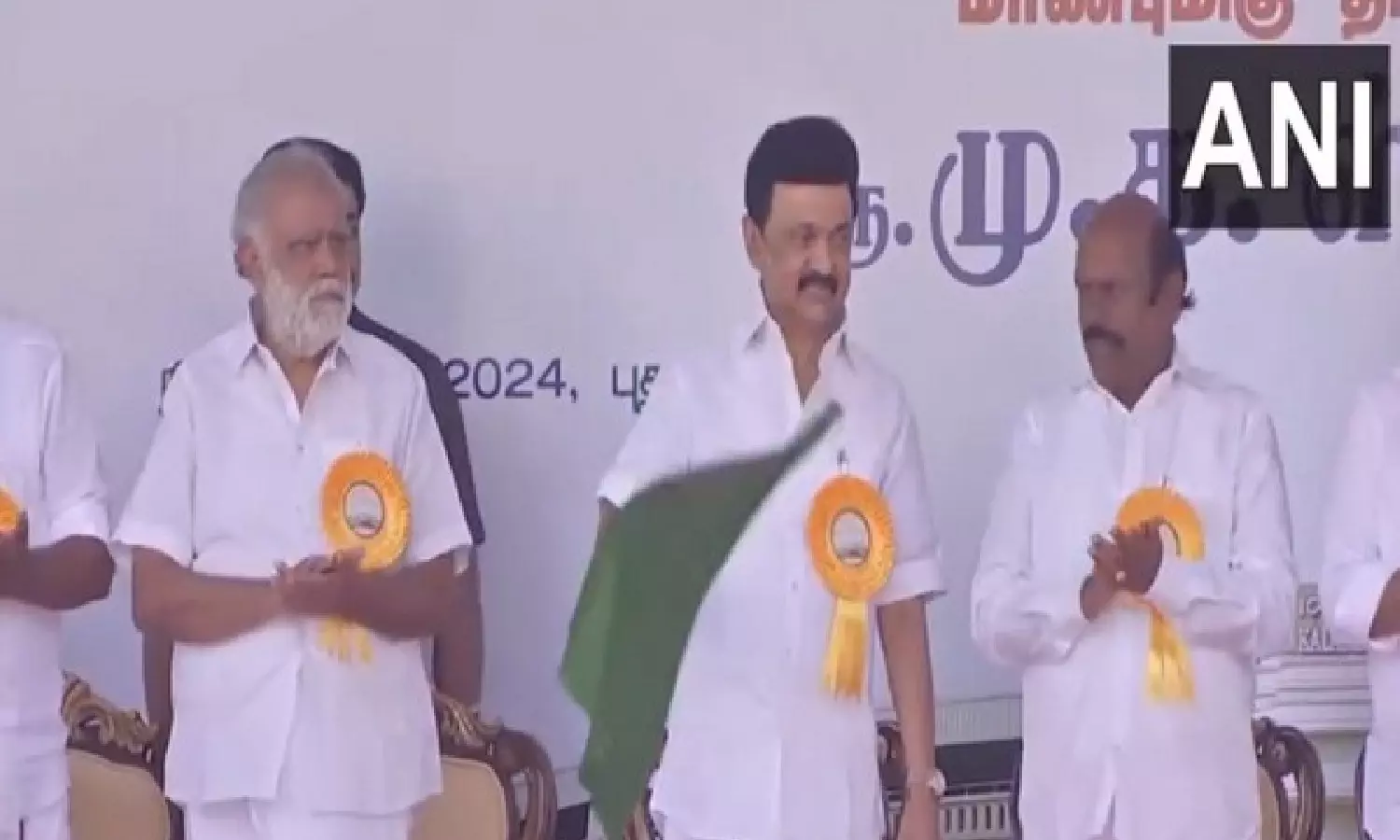 Tamil Nadu Chief Minister MK Stalin flags off the Jallikattu event (Photo: ANI)