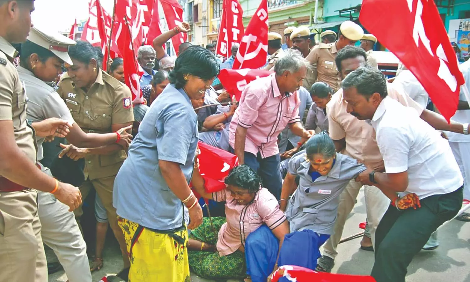 Terminated cleanliness staff of Srirangam stage protest, arrested