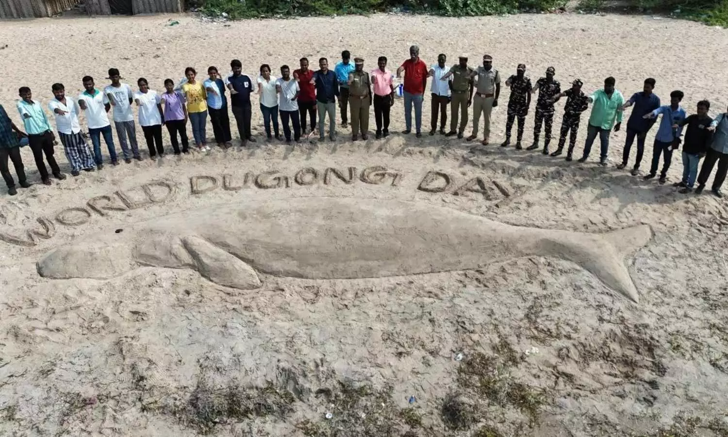 Earlier, the participants took oath in front of the sand sculpture of dugong created by the DFO Akhil Thampi at Pudupattinam coast.