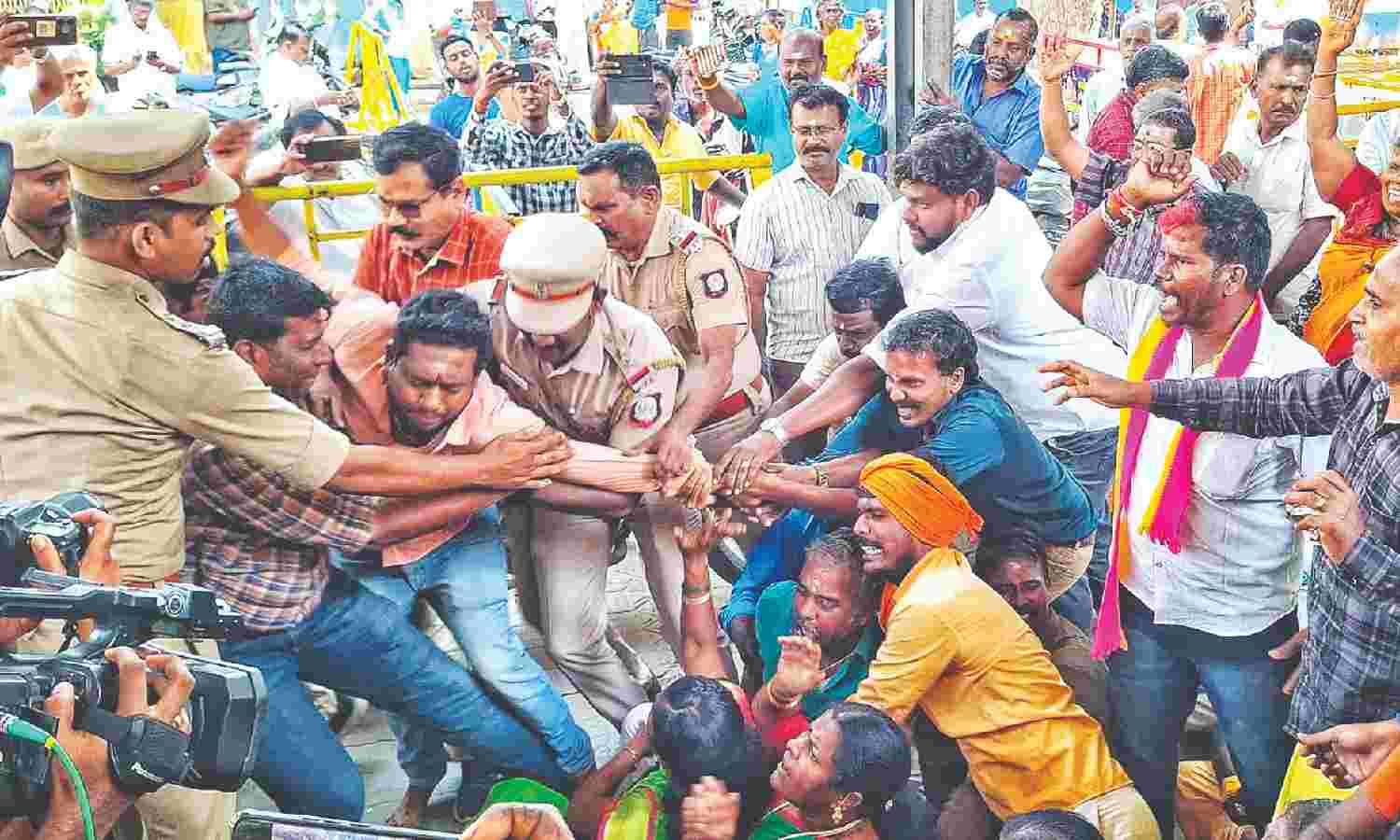 Police evict protesters from the Tiruparankundram temple vicinity in Madurai on Tuesday