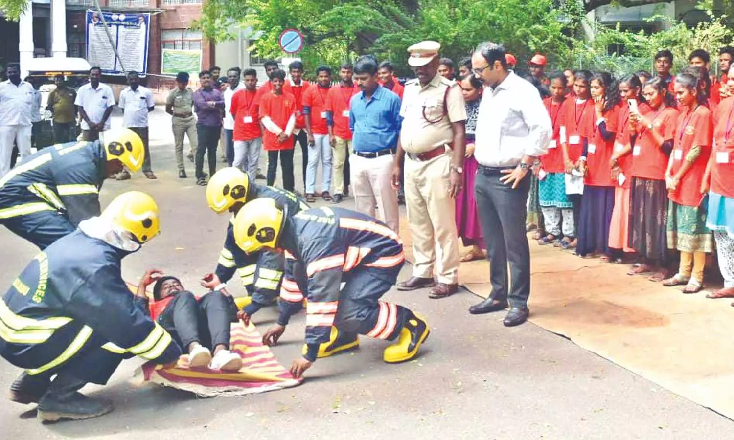 Tiruvallur District Collector Dr Alby John Varghese inspects the disaster drills on Friday