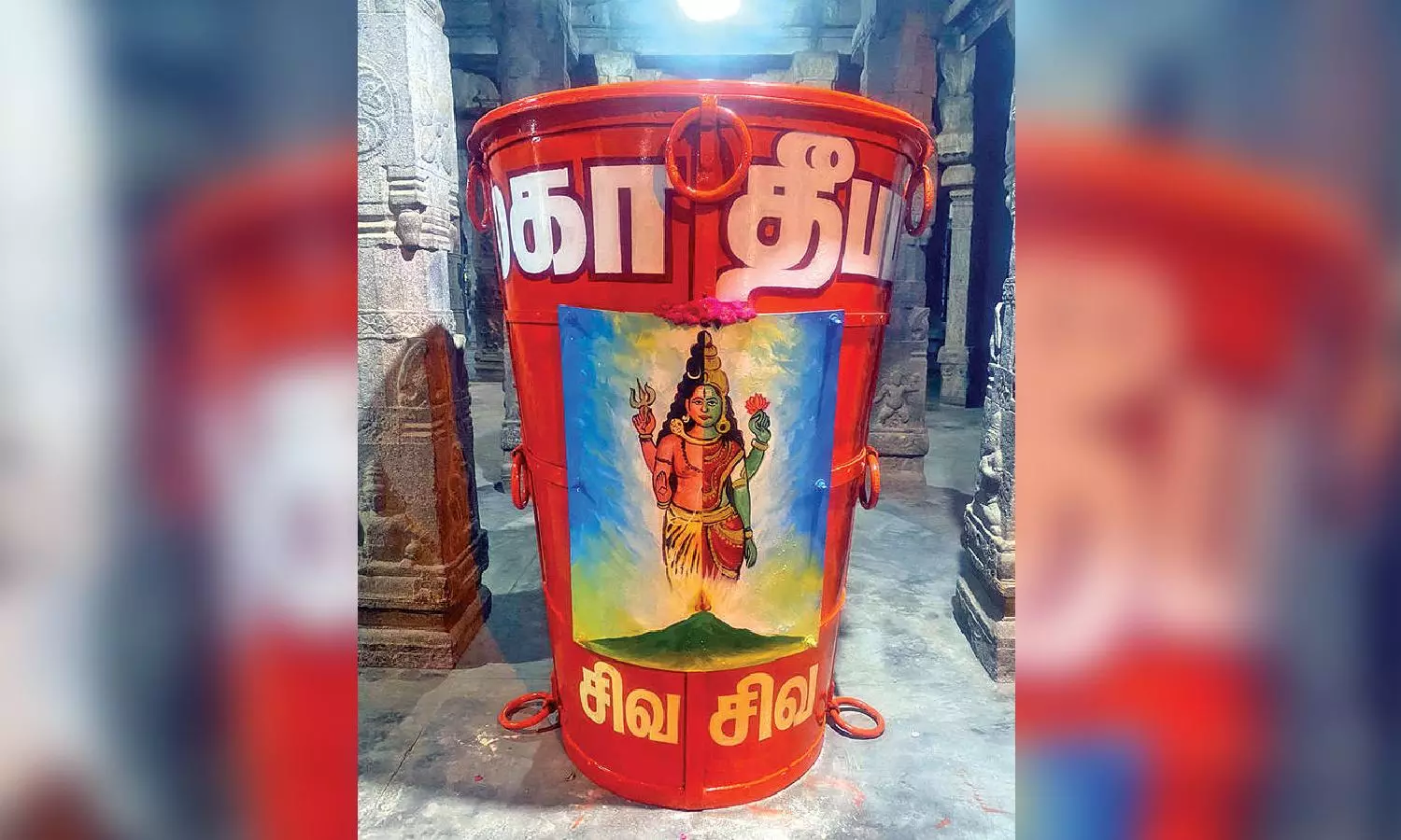 The cauldron, which will be taken to the top of Annamalai hill for the Maha Deepam fest on Saturday