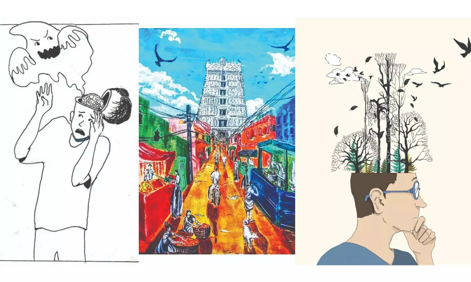 Based out of Vellore, Betsy preferred art as it was easy for her to express herself. “Art came naturally to me. Although I thought that art would gradually diminish to a hobby in my life, it has repeatedly surfaced as an essential and unavoidable part of who I am. Growing up, it became a therapeutic tool,” says the artist. Betsy used different mediums of art to express emotions. For example, if she feels anxious, she turns to doodling with pens and pencils or sketching with charcoals. When she wanted to express positive emotions, she was confident in handling acrylic and watercolour paintings.