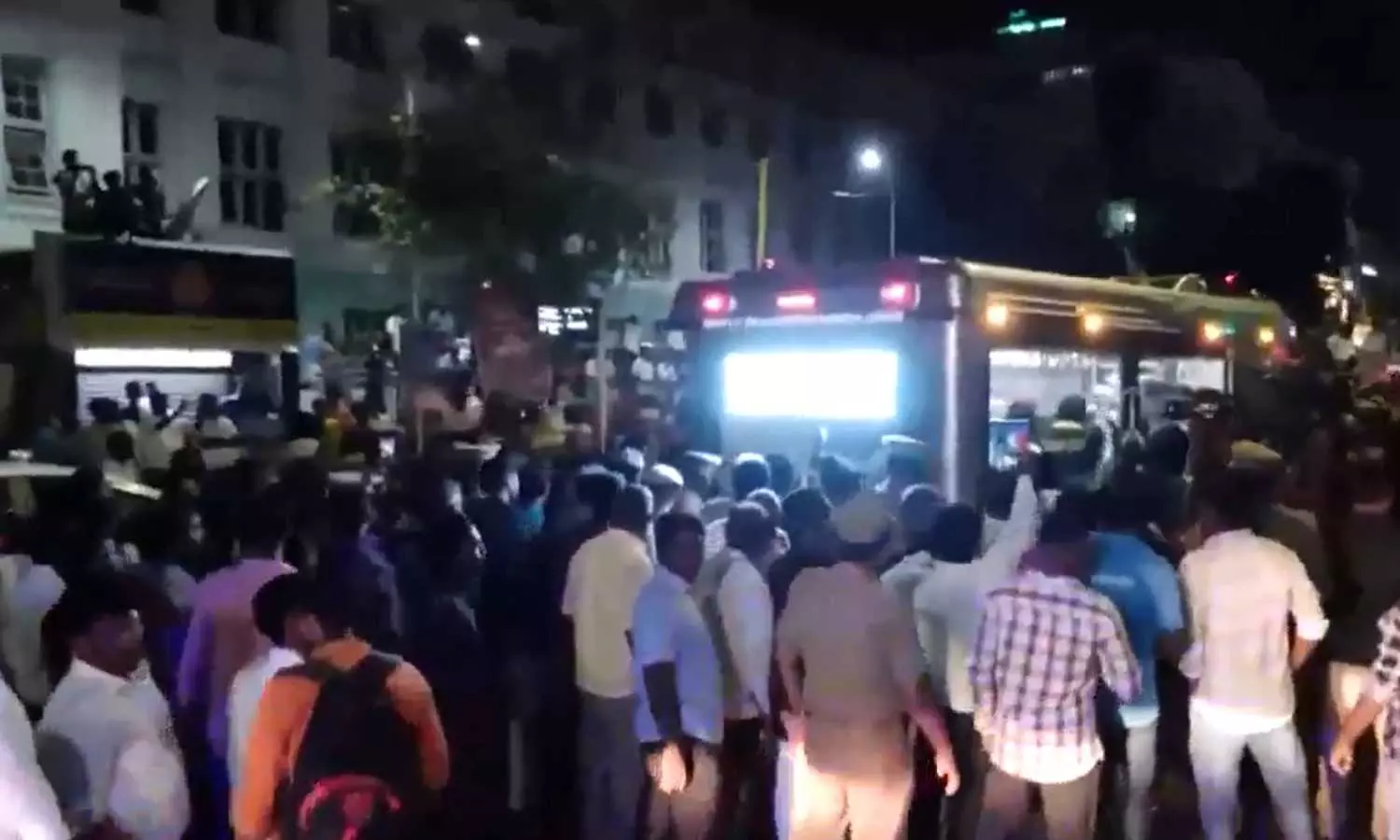 Senior police officers were constantly pacifying the agitators throughout the day to prevent any untoward incidents.