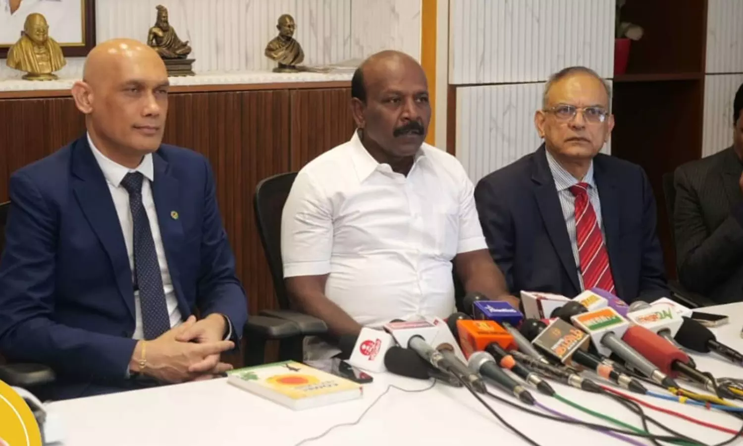 Ma Subramanian with Dr Kailesh Kumar Singh Jagutpal, health and wellness minister, Republic of Mauritius at Secretariat on Wednesday.