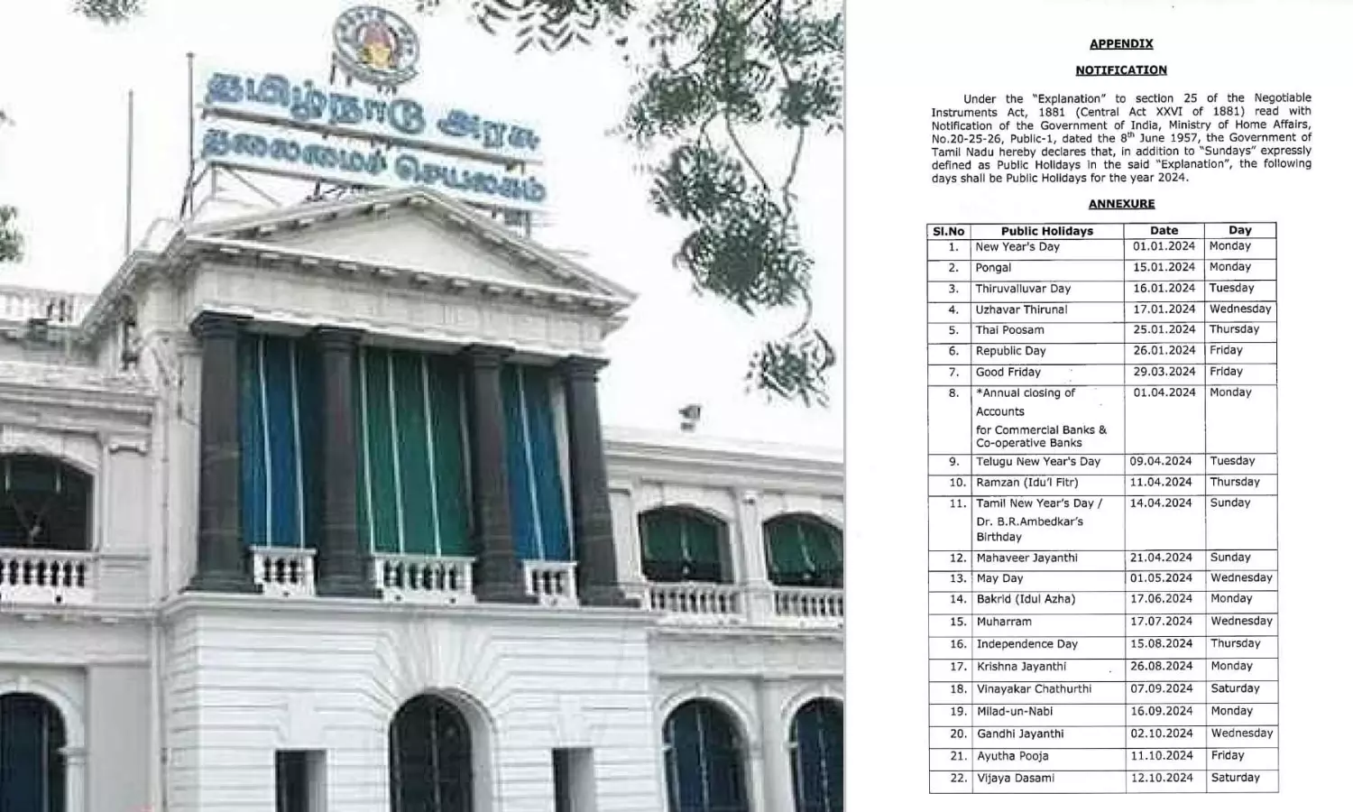 CHENNAI: The Tamil Nadu government on Friday released the list of public holidays for 2024.