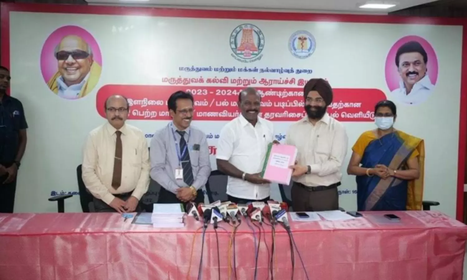 CHENNAI: Health minister Ma Subramanian released the rank list for medical and dental courses admission for the year 2023-24 at the Guindy Multi-Super Speciality Hospital on Sunday, in the presence of health secretary Gagandeep Singh Bedi and Director of Medical Education Dr R Shantimalar.
