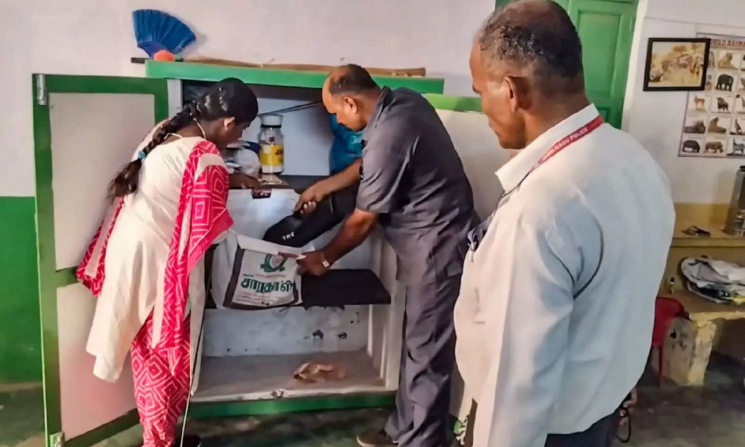 Officials search premises of a school after an alleged bomb threat, in Tiruchirappalli (Photo: PTI)
