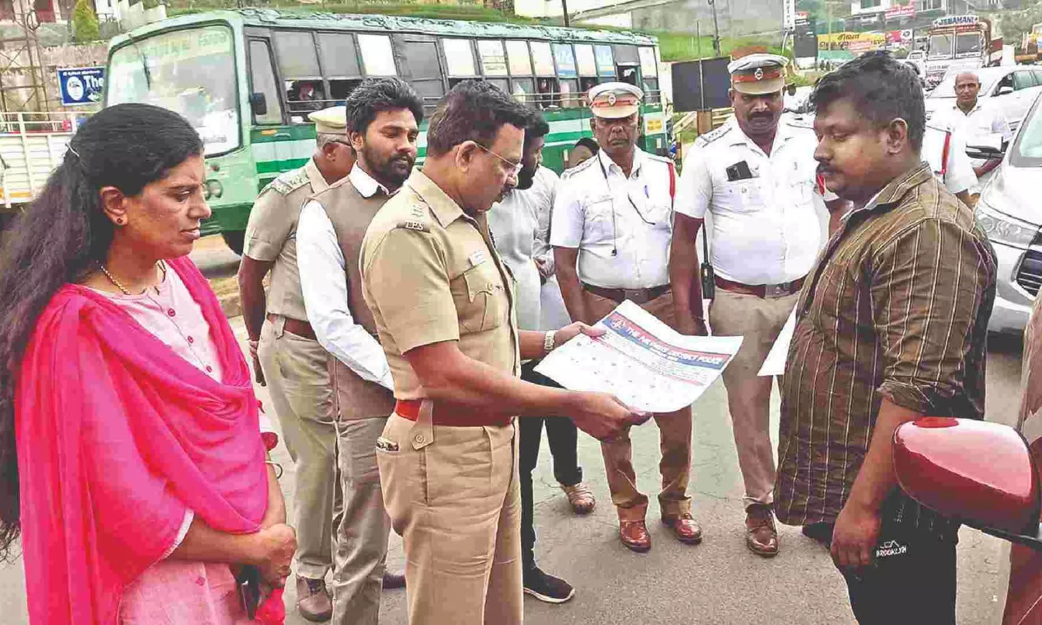 Superintendent of Police P Sundaravadivel distributing maps showing tourism spots to visitors in the Nilgiris district