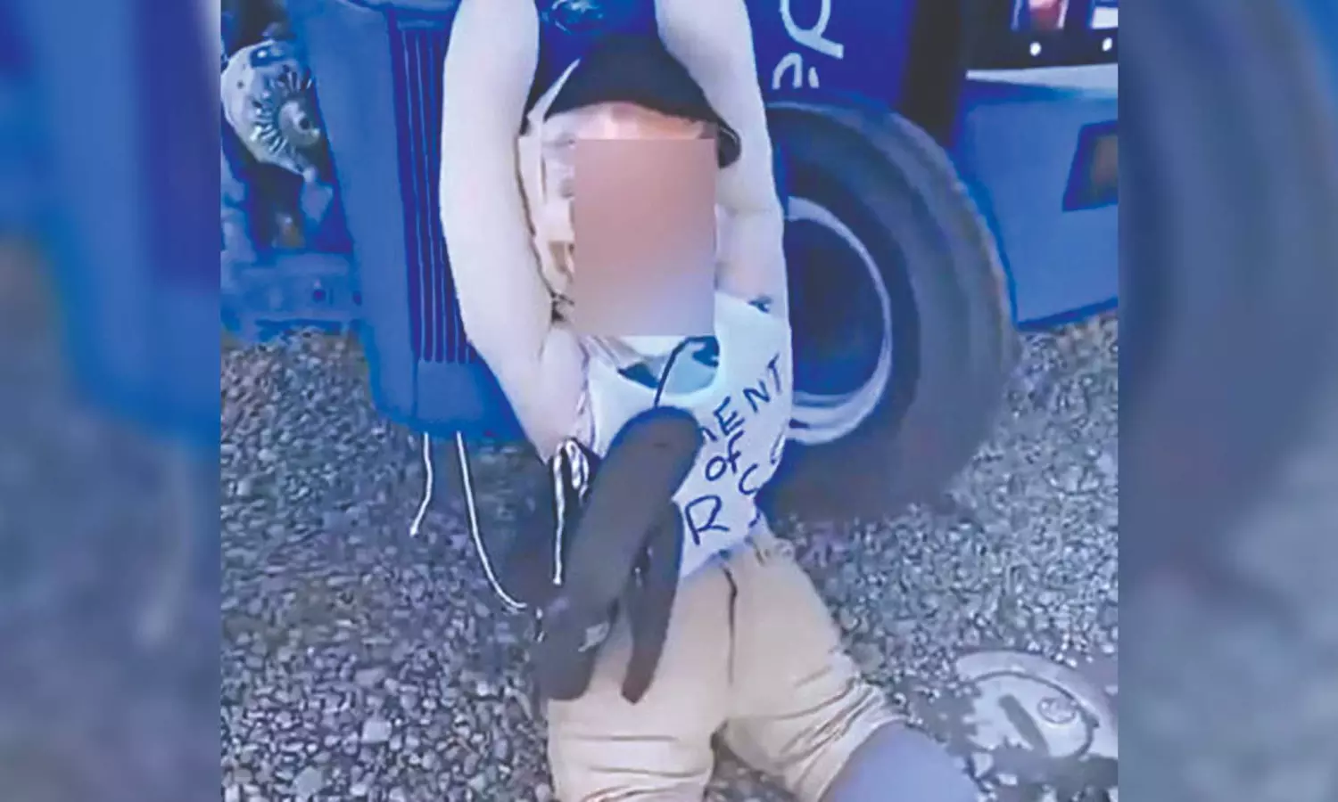 Posters with the text ‘No Farmers, No Food’ are in the background. A prominent right wing influencer tweeted the video with the caption, ‘Blood boils’. AltNews found that the tractor seen in the video was filmed outside an eatery in Oregon, the US.