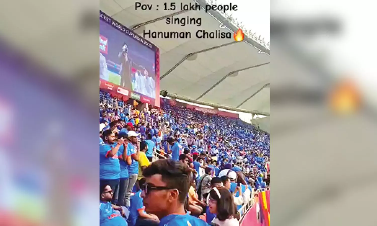 India faced Australia in the final of the ICC men’s cricket World Cup 2023 at the Modi Stadium in Ahmedabad. A video in which spectators at the packed stadium are heard chanting the Hanuman Chalisa in unison was shared widely on social media. Several media outlets picked up the clip and claimed that spectators were heard chanting. AltNews found that audio from a satsang was edited to match the video from the stadium to make it appear that lakhs of spectators chanted the Chalisa during the match.