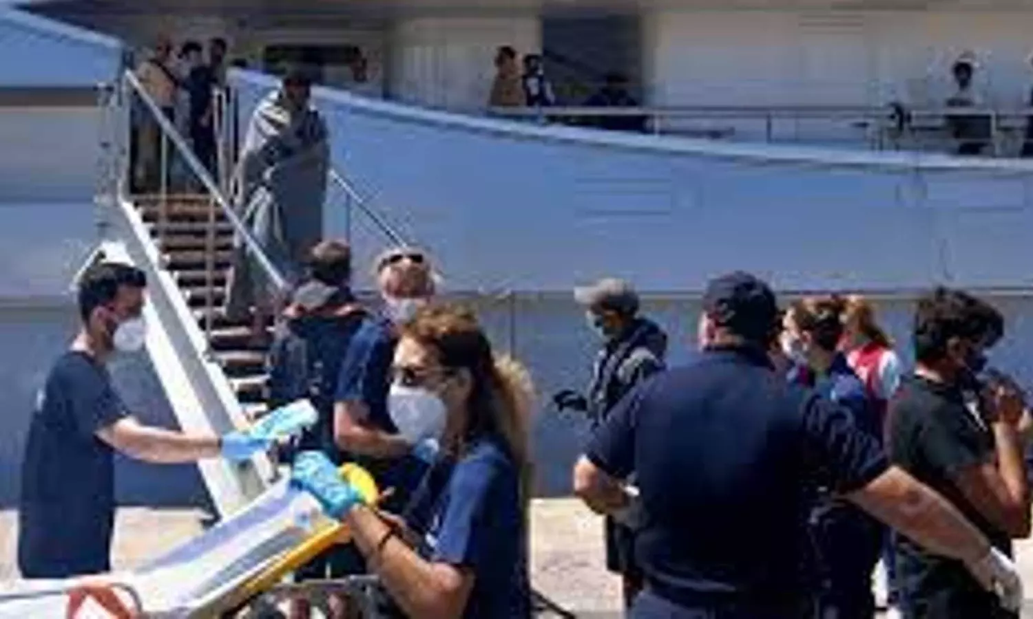 Survivors arrive by yacht after a rescue operation at the port in Kalamata town, about 240 kilometers (150 miles) southwest of Athens. (AP)