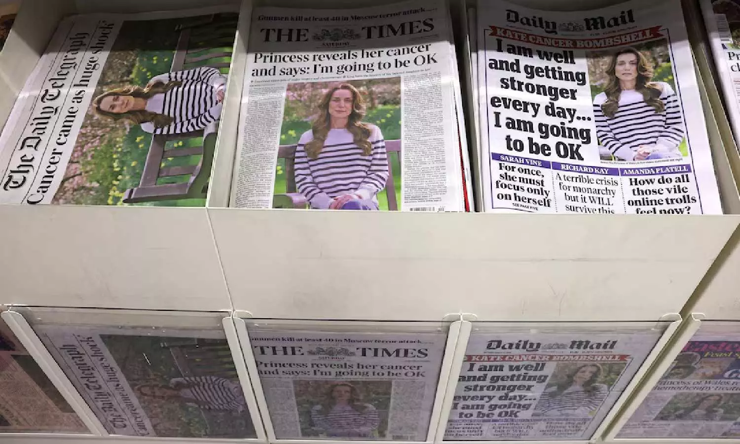 LONDON: Friday's shock announcement from Kate, Britain's Princess of Wales, of her cancer diagnosis dominated the nation's newspaper front pages on Saturday, with messages of support combined with criticism of those who had speculated about her health.