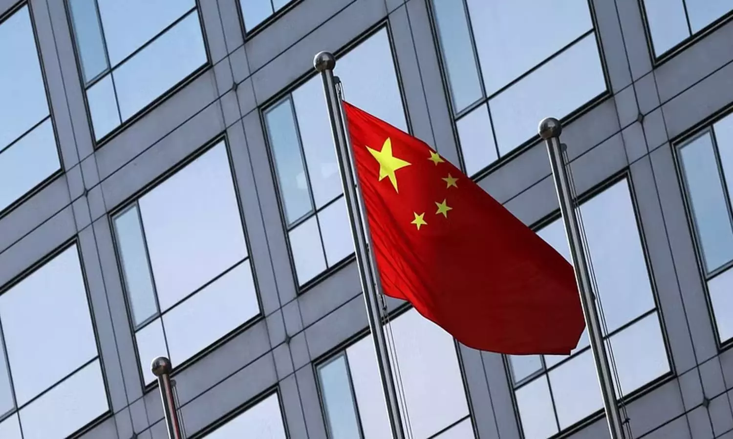 A Chinese flag flutters outside the China Securities Regulatory Commission building