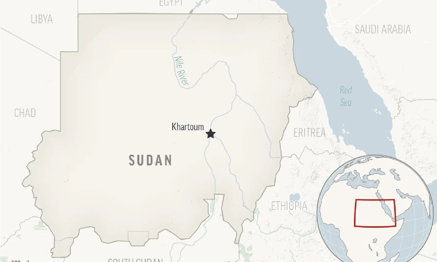 This is a locator map for Sudan with its capital, Khartoum
