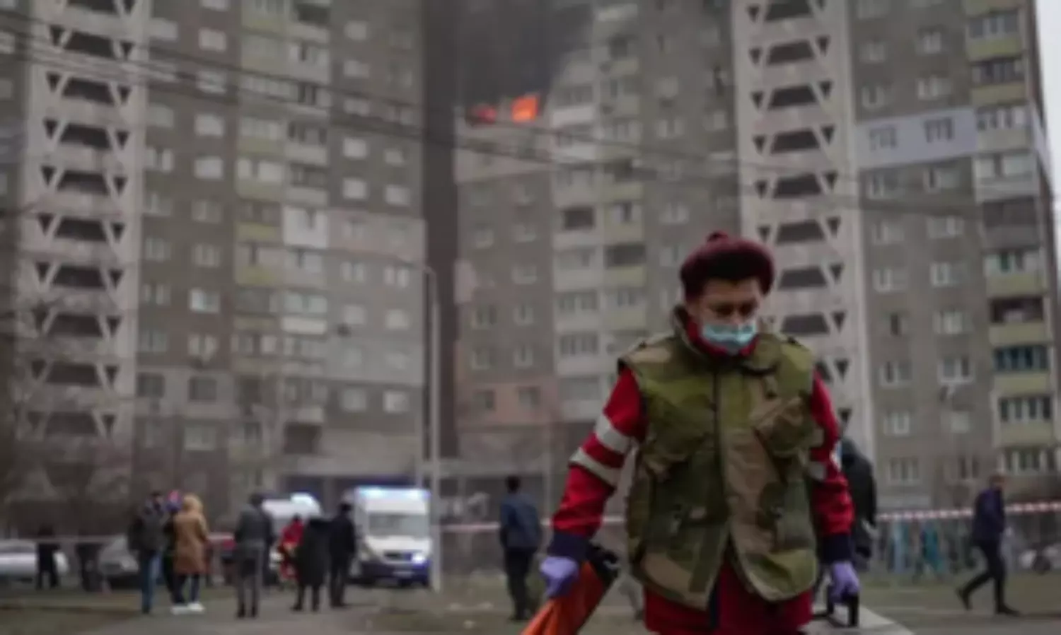 A high-rise building in Kiev's Holosiivskyi district was hit and caught on fire, leaving several people dead and dozens injured.