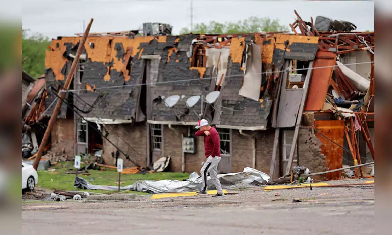 A man walks past a damaged building after it was hit by a tornado the night before in Sulphur, Oklahoma (Reuters)