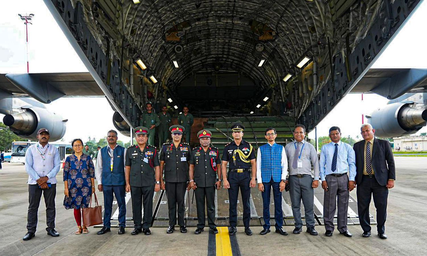 Sri Lankan and Indian officials during Operation Sagar Bandhu, a rapid humanitarian assistance and disaster relief (HADR) mission launched by India to help Sri Lanka recover from the devastation caused by the recent Cyclone Ditwah, in Sri Lanka. (PTI)