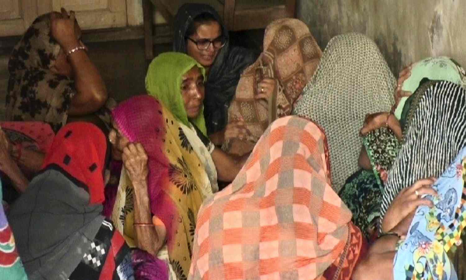 Family members and relatives mourn outside the residence of Pradipkumar Patel and his daughter who were shot dead at a convenience store in the US state of Virginia, in Mehsana district, Gujarat (PTI)