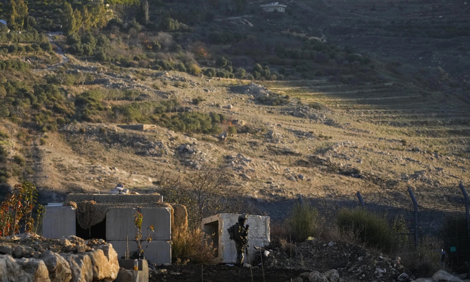 An Israeli soldier stands guard at a security fence near the so-called Alpha Line (AP)