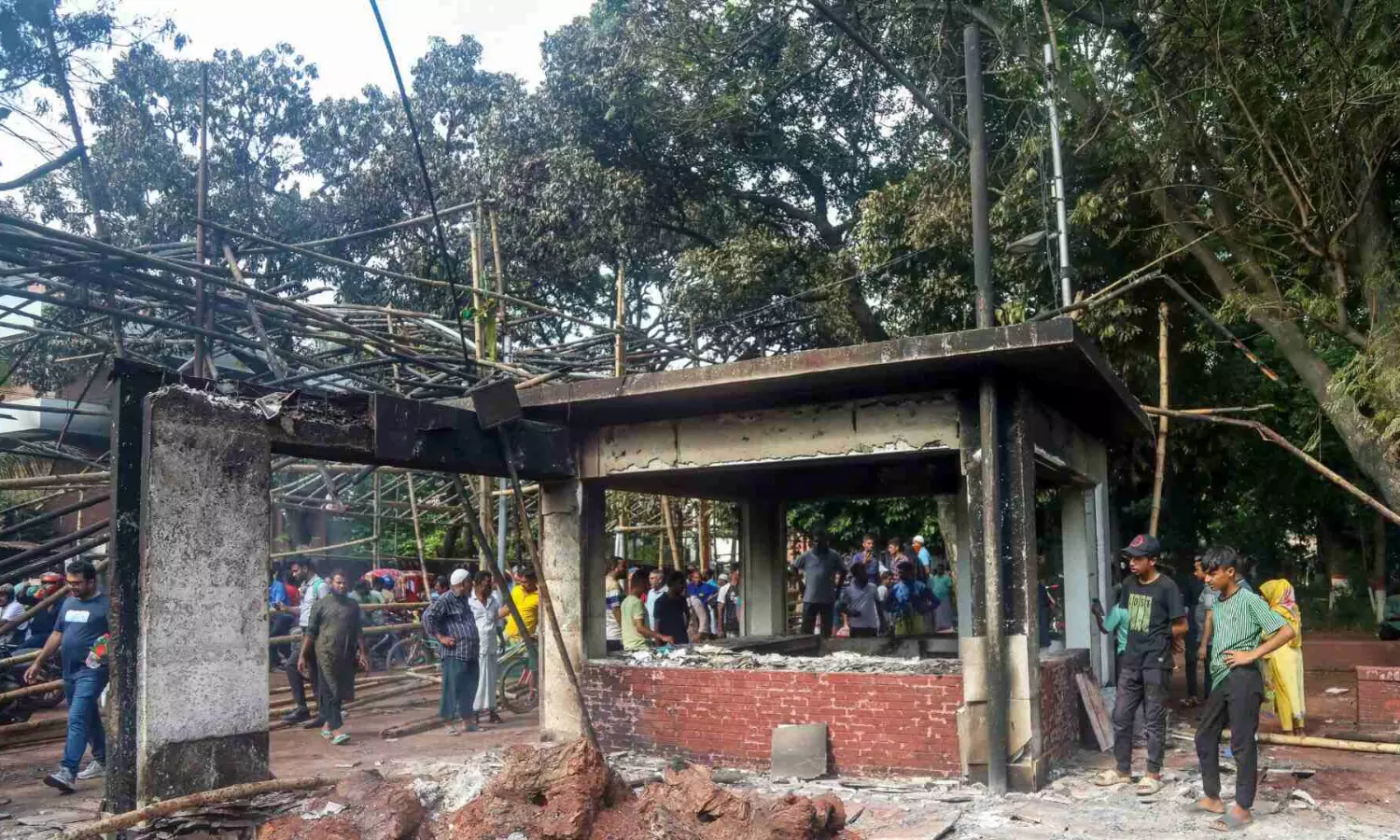People gather in front of the house of former President Sheikh Mujibur Rahman, father of Prime Minister Sheikh Hasina