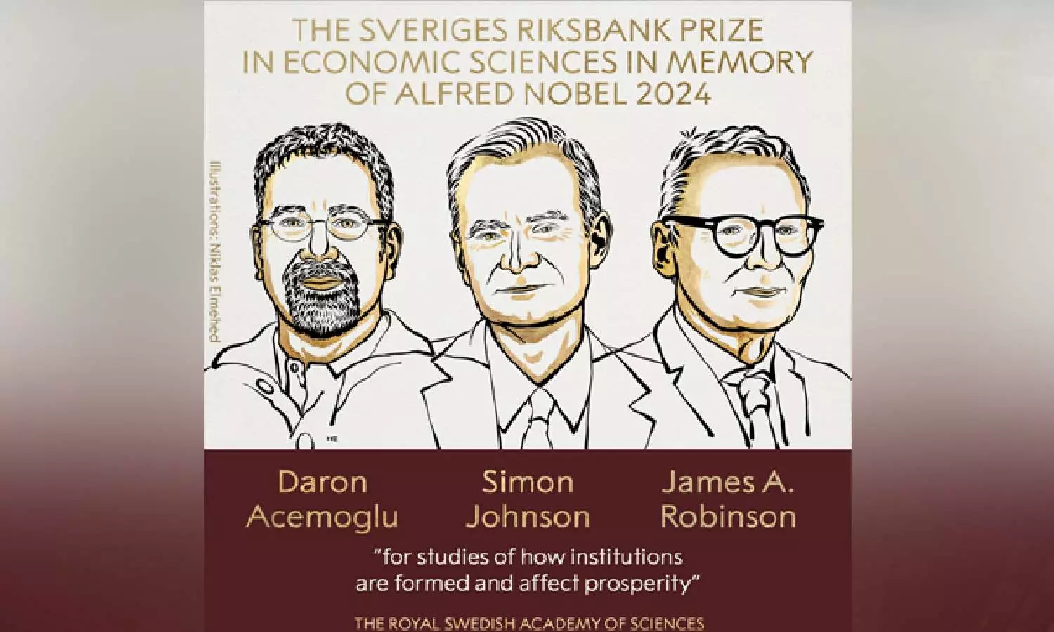 STOCKHOLM: The Nobel memorial prize in economics was awarded Monday to Daron Acemoglu, Simon Johnson and James A. Robinson for research into reasons why some countries succeed and others fail.