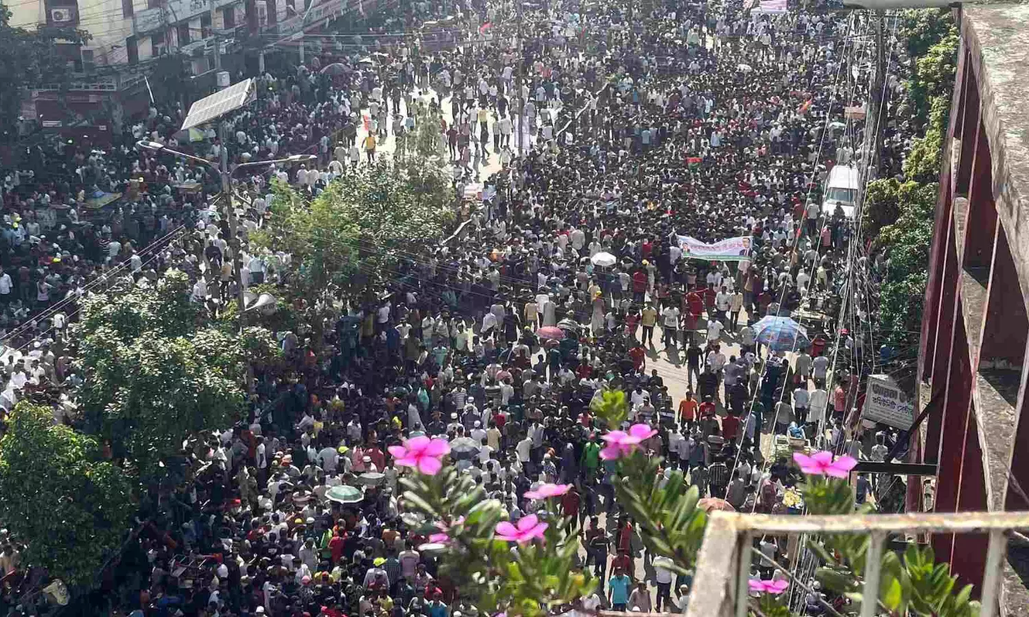 Supporters of Bangladesh Nationalist Party (BNP) gather to attend a mass party rally at the Naya Paltan area (PTI)