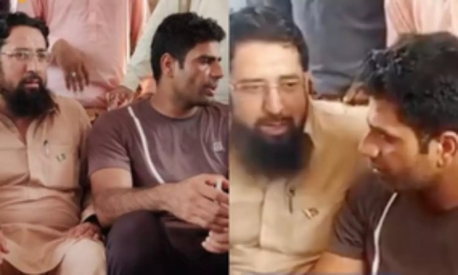 Haris Dar was seen sitting with Arshad Nadeem at his hometown in Mian Channu in Pakistan’s Punjab province. Local sources said that Haris Dar is a known political figure in the area and that he had come to congratulate Arshad Nadeem on his achievement.
