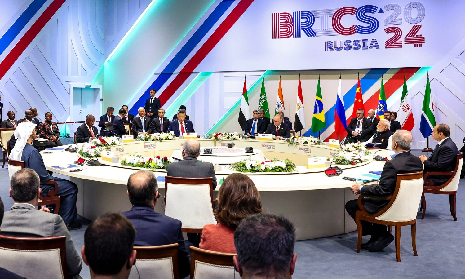 Prime Minister Narendra Modi with Russia's President Vladimir Putin, China's President Xi Jinping and other world leaders during a plenary session of the 16th BRICS Summit (PTI)