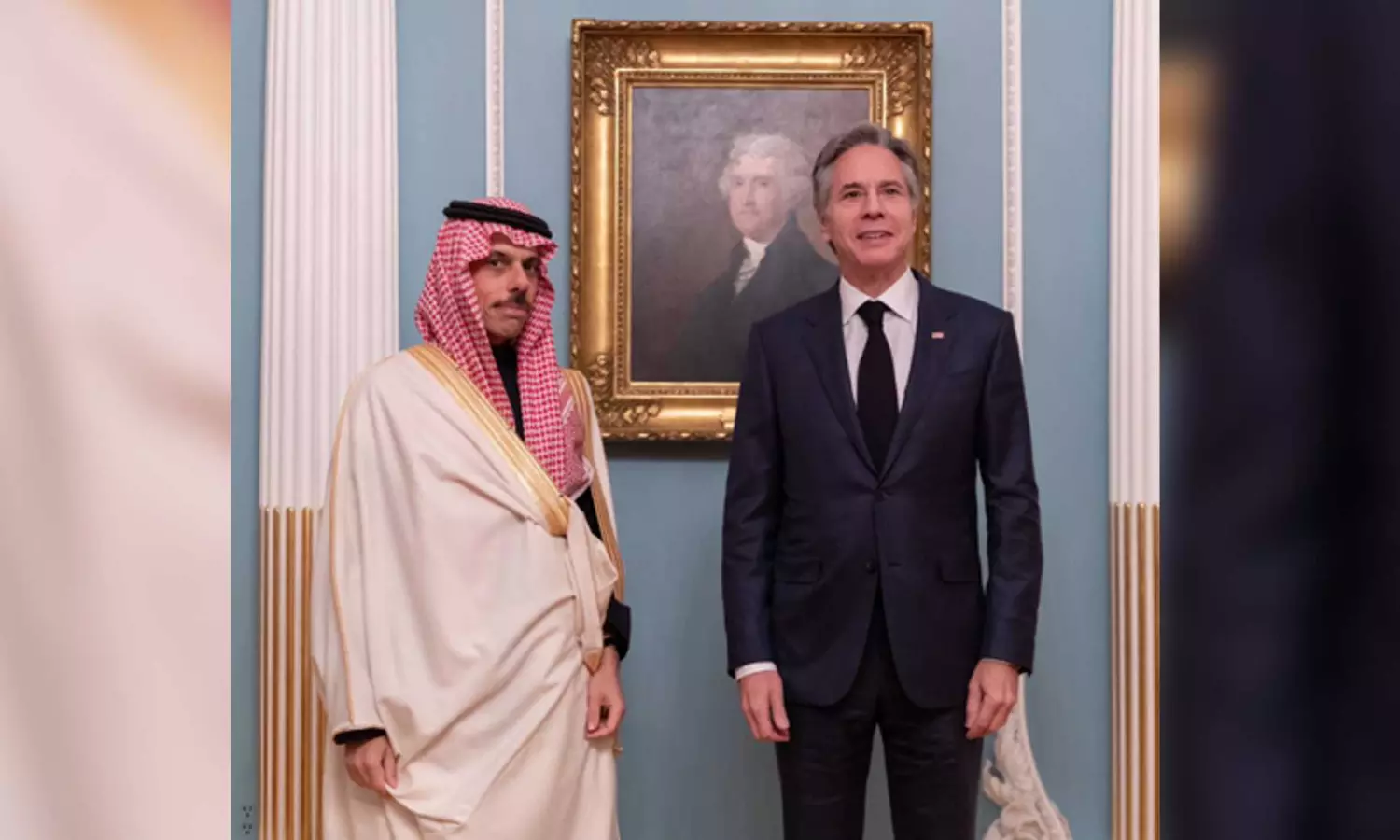 WASHINGTON DC: Saudi Arabia's Foreign Minister Prince Faisal bin Farhan held discussions with US Secretary of State Antony Blinken in Washington, DC to discuss the Israel-Hamas war, Arab News reported. The meeting involved a comprehensive review of bilateral relations between Saudi Arabia and the United States.