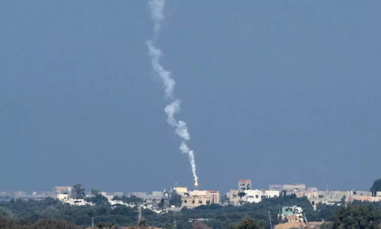 A flare falls over Gaza, amid the ongoing conflict between Israel and the Palestinian Islamist group Hamas, as seen from southern Israel (Reuters)