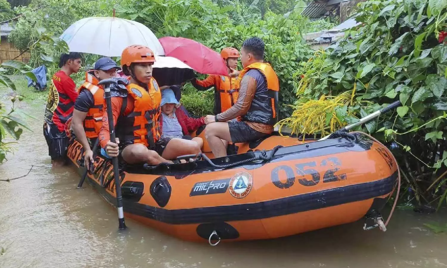 In Northern Samar province, coast guard personnel used rubber boats and rope to evacuate 40 villagers on Sunday in two villages that were engulfed in waist- to chest-high floods, the coast guard said.