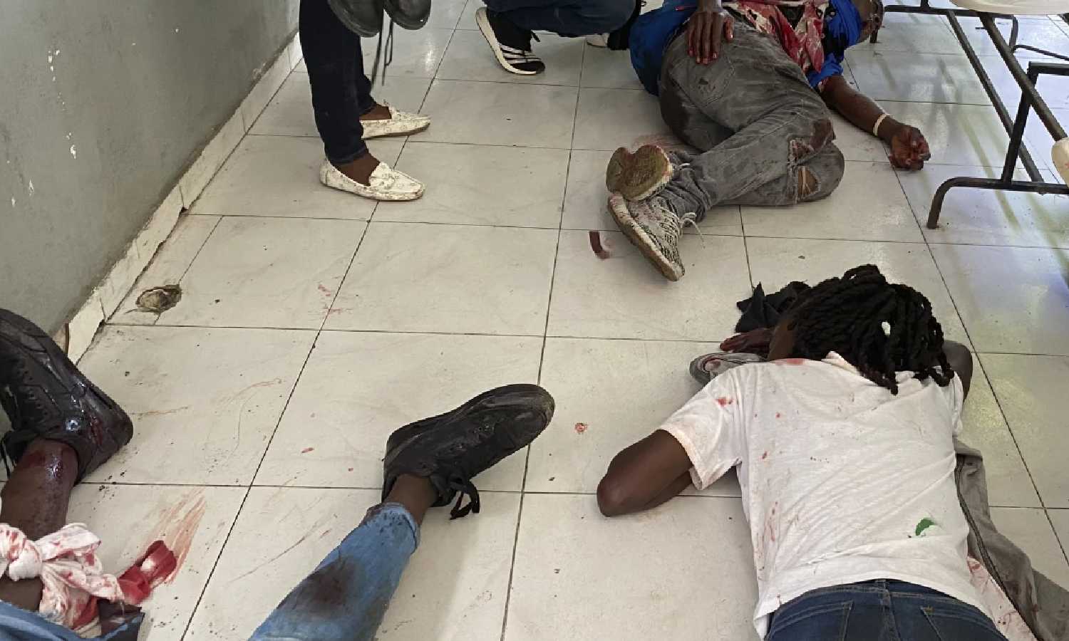Journalists lie wounded after being shot by armed gangs at the general hospital in Port-au-Prince, Haiti (AP)