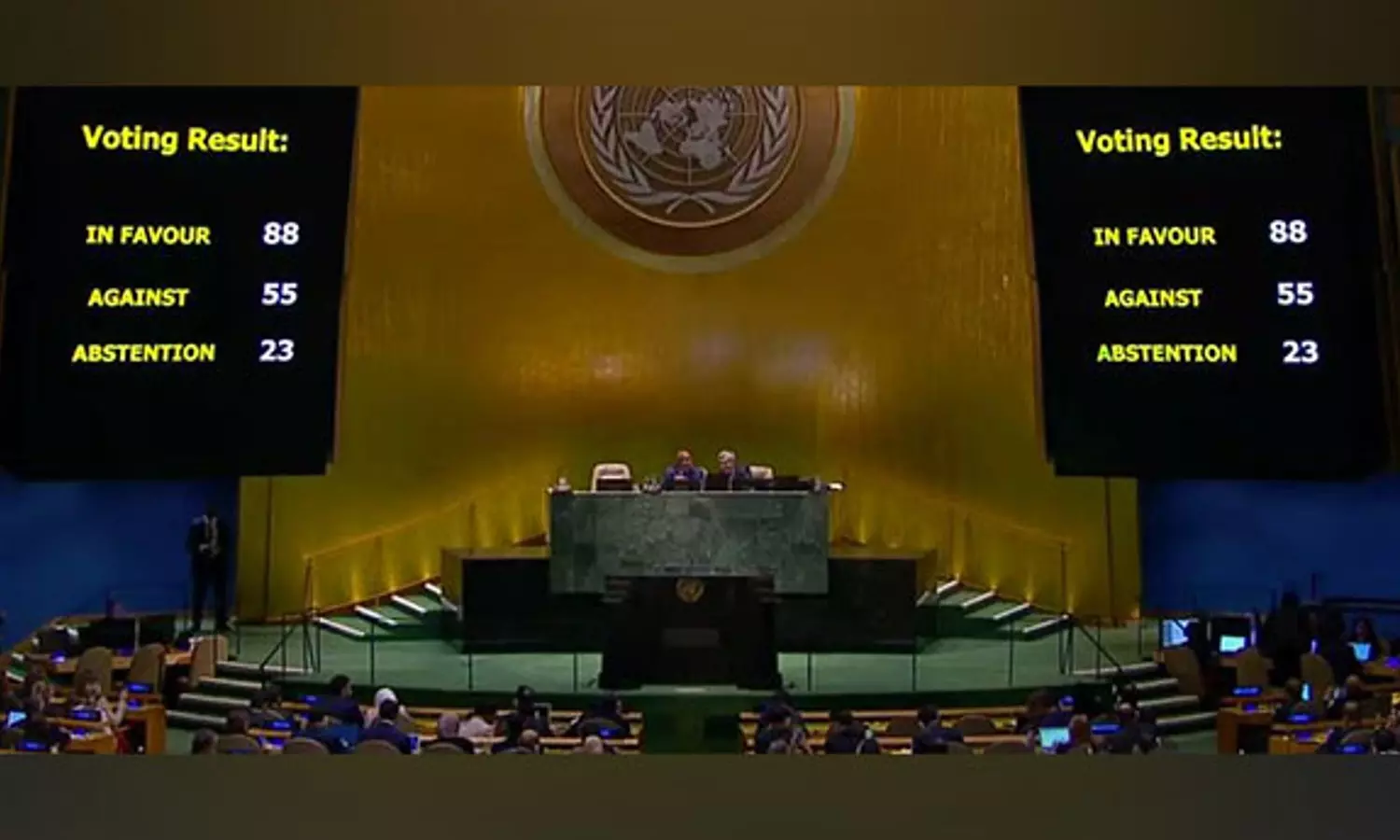 NEW YORK: The United Nations General Assembly on Friday (local time) adopted a resolution calling for an "immediate, durable and sustained humanitarian truce" between Israeli forces and Hamas terrorists in Gaza.