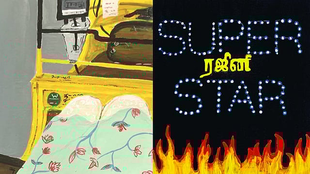 The paintings capture the city in its true sense from featuring Superstar Rajinikanth title card for which his fans flock to the theatres to the simple conversational auto drive people have while going for a trip. The other paintings show the city's lighthouse, Napier bridge, and flowers in a basket.